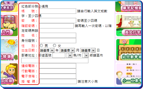 01.用滑鼠点选加入会员之选项后,即出现加入会员资料填写表格,依据表格提示填入正确资料。